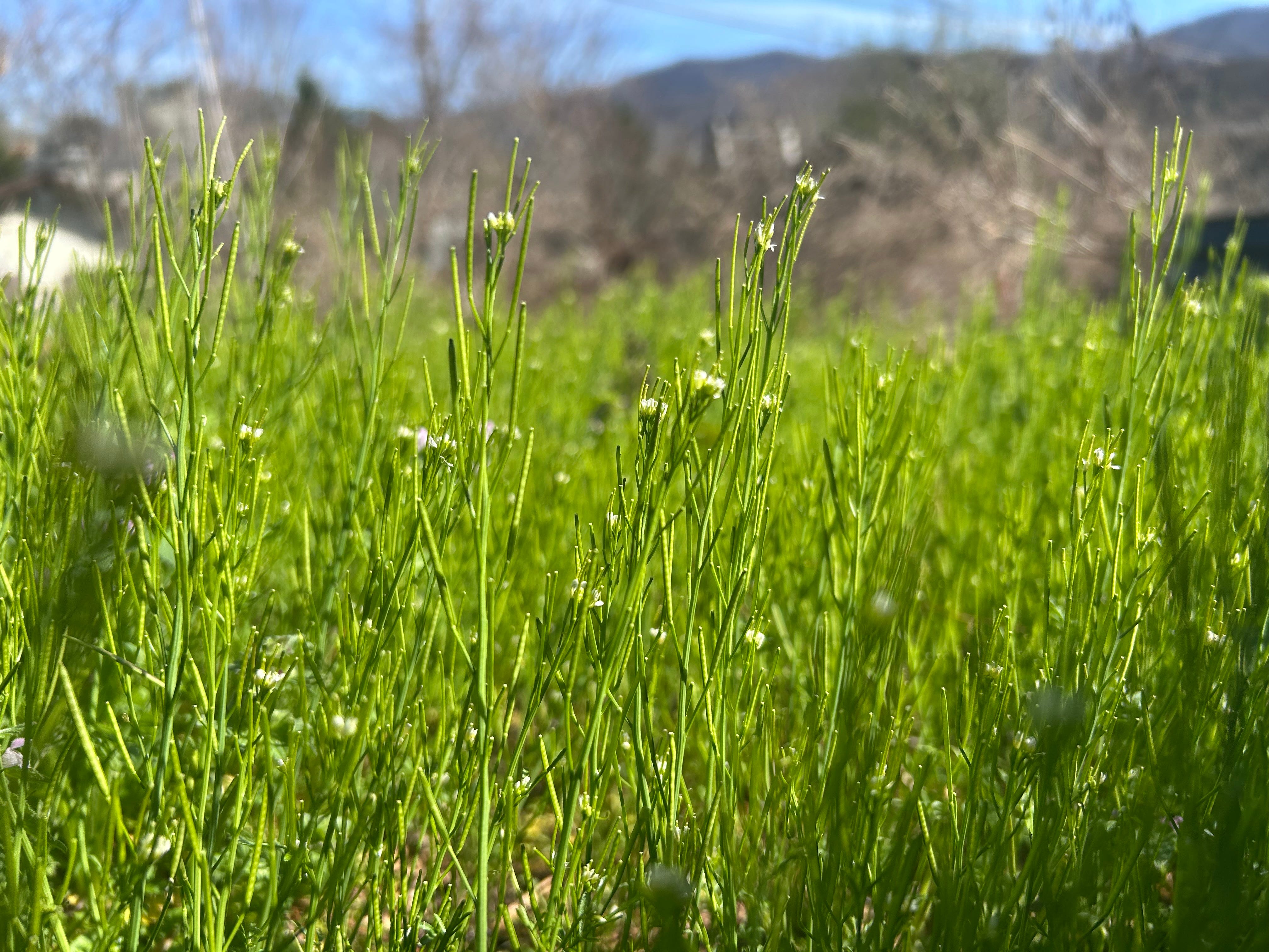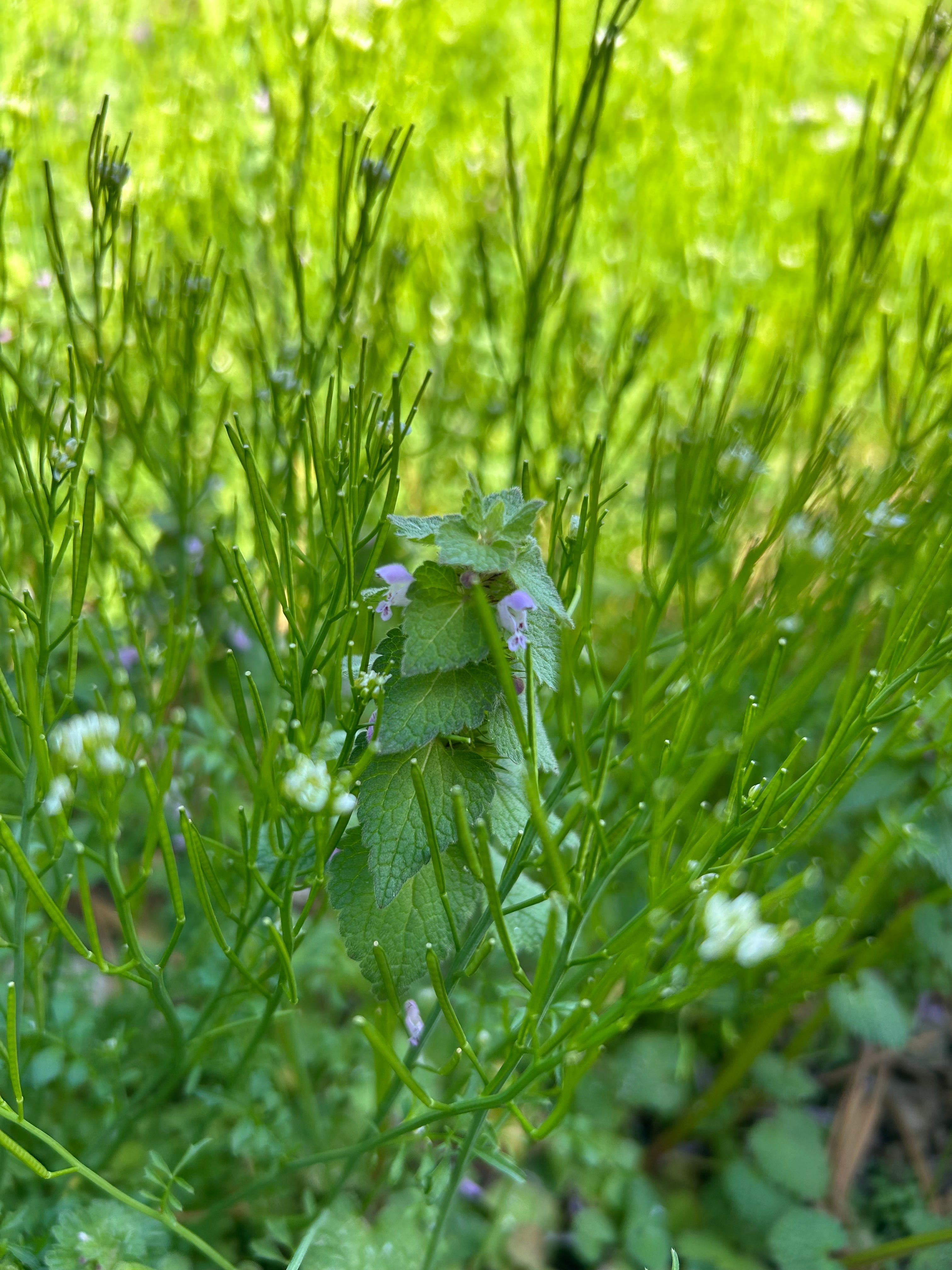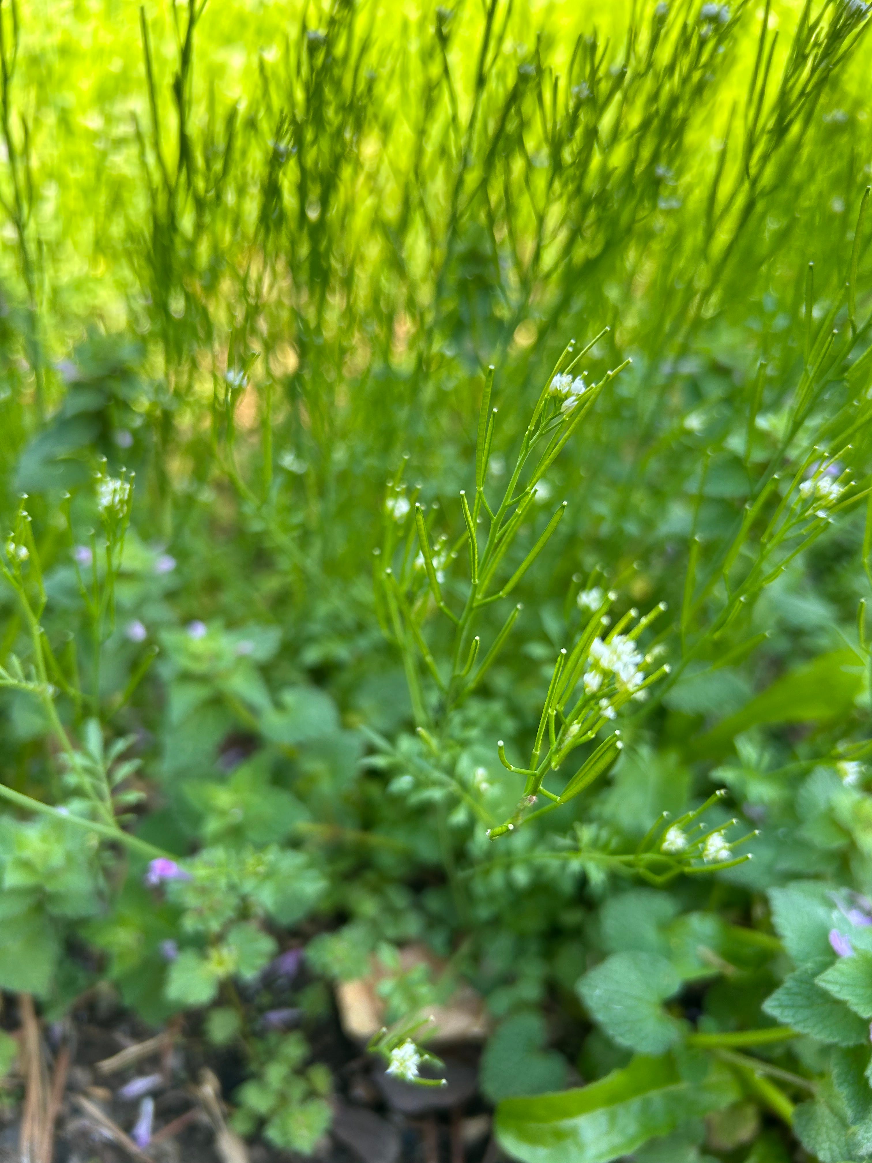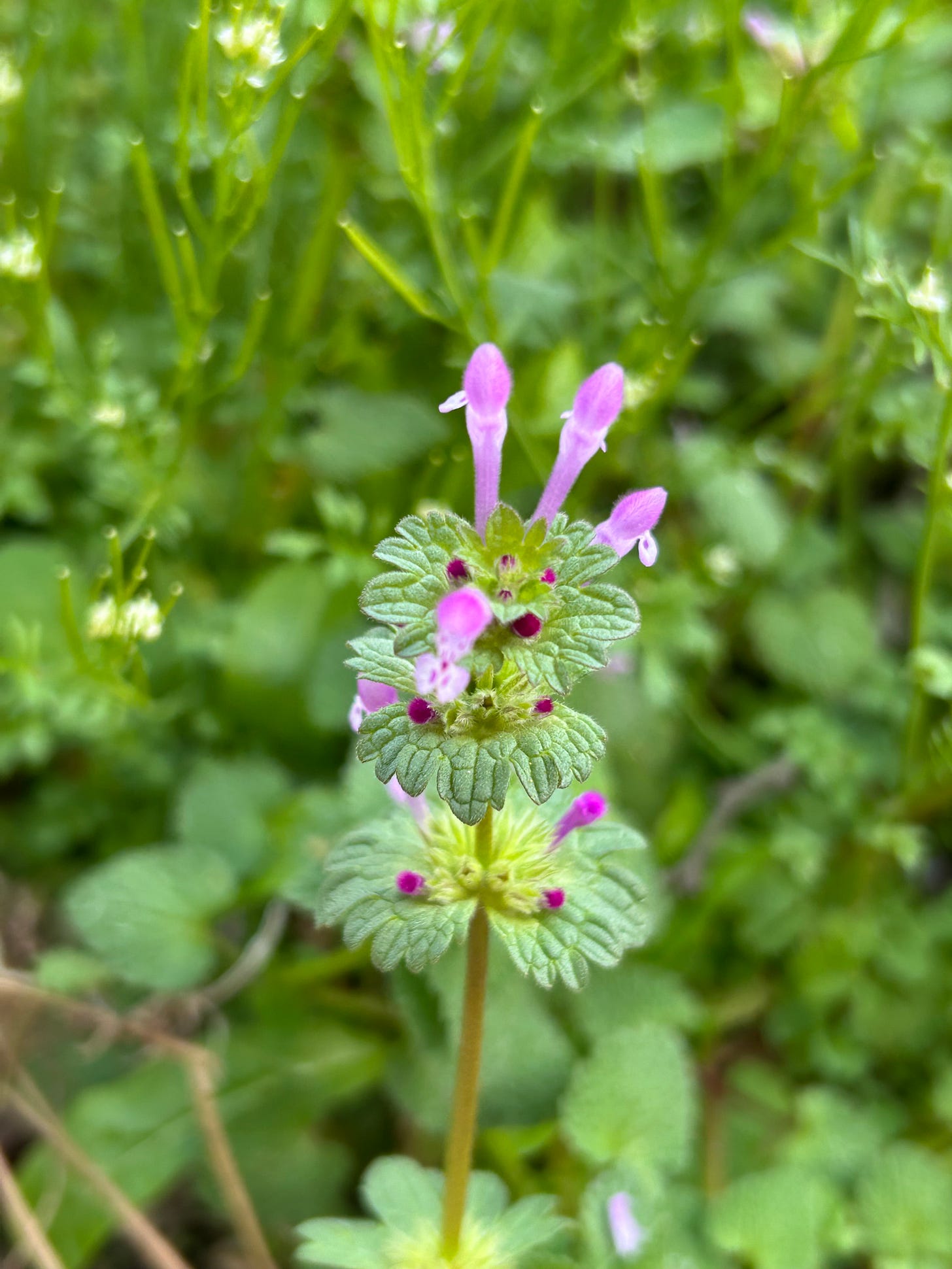 The small swath of garden contained by the stone wall is nearly full of these gorgeous early bloomers. Henbit, Bitter hairy cress, and Purple dead nettle have a delicate appearance, while the Prickly lettuce is sturdy and dense.