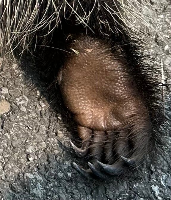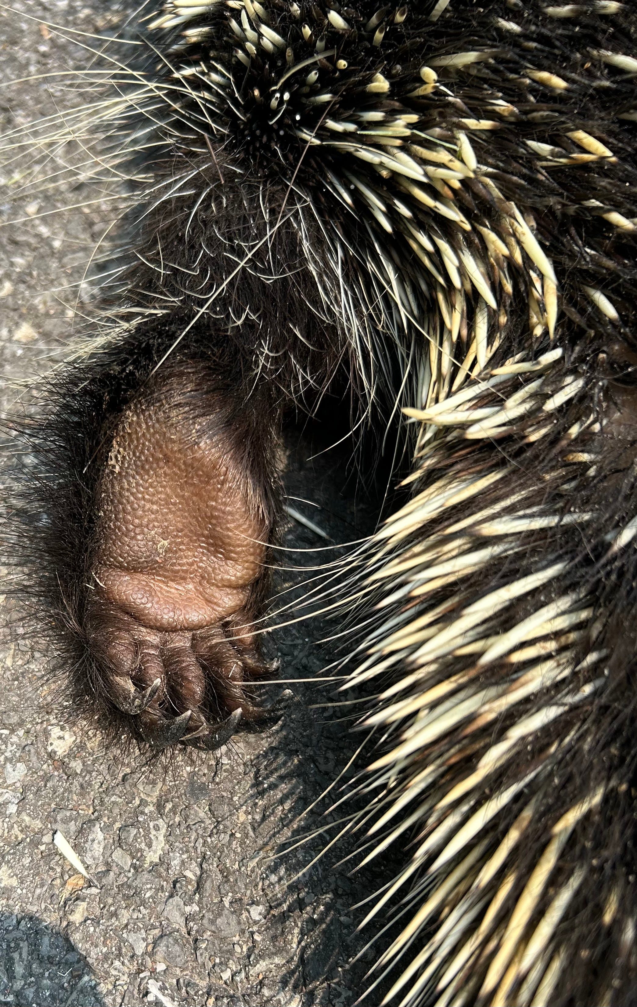 Its fur was wiry and course. The quills were formidable. So were the claws, which are meant to help it climb trees. The face was dear and wise, even in death.